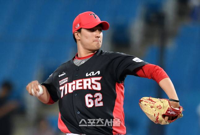 KIA 마무리투수 정해영이 26일 대구 삼성라이온즈파크에서 열린 2022 KBO리그 삼성과의 경기 8회말 등판해 힘차게 공을 던지고 있다. 2022. 5. 26.