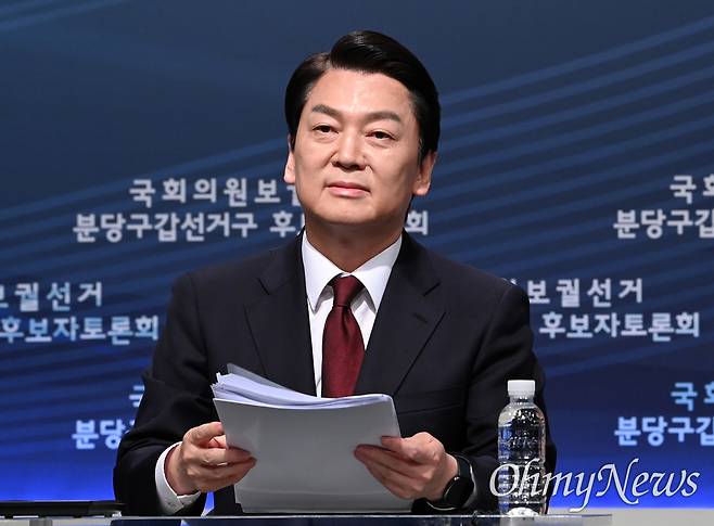 | ▲ 경기 성남 분당갑 국회의원 보궐선거에 출마한 국민의힘 안철수 후보가 26일 경기도 성남시 분당구 아름방송에서 열린 성남시 분당구 선거방송토론위원회 주관 국회의원 보궐선거 분당구갑선거구 후보자 토론회에서 토론을 준비하고 있다. |
