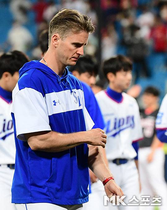 스윕패를 당한 삼성 선수들이 그라운드를 빠져 나오고 있다.
