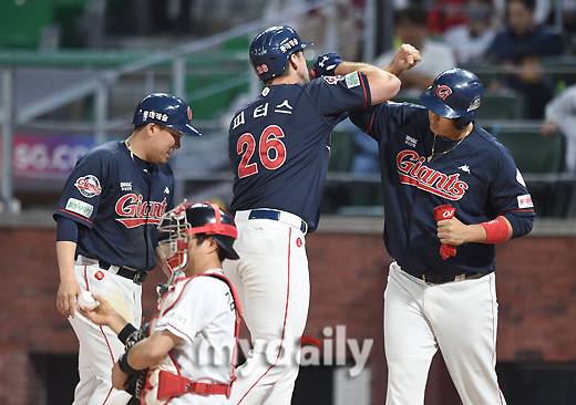 [MD포토] 피터스 '역전의 기쁨을 이대호와 함께'