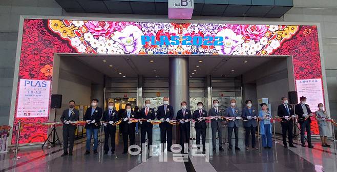 [이데일리 김태형 기자] 26일 서울 코엑스에서 열린 '조형아트서울 2022' 개막식에서 정운찬 동반성장위원회 이사장, 신준원 조형아트서울 대표, 김영원 원로 조각가 등이 테이프 커팅을 하고 있다.