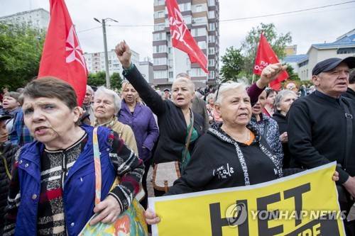 epa09977478 The supporters of Igor Dodon and socialist party attend at a protest in front of a court building during the court hearing process in Chisinau, Moldova on 26 May 2022. Former President of Moldova Igor Dodon is accused of passive corruption, illegal party financing, betrayal of the homeland and illicit enrichment. EPA/DUMITRU DORU