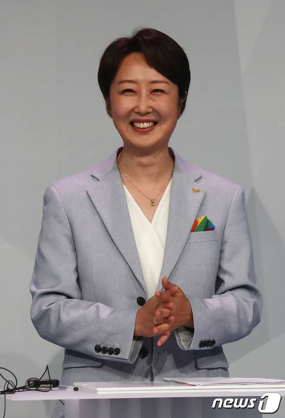 (서울=뉴스1) 국회사진취재단 = 권수정 정의당 서울시장 후보가 26일 오후 서울 마포구 MBC에서 열린 서울시장 후보자 TV 토론회에서 토론 준비를 하고 있다. 2022.5.26/뉴스1