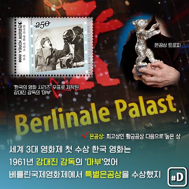 세계 3대 영화제 첫 수상은 1961년 강대진 감독의 '마부'였습니다. 베를린 국제영화제에서 특별은곰상을 받았죠.