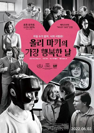 | 올리 마키의 가장 행복한 날 The Happiest Day in the Life of Olli Mäki, Hymyilevä mies 2016|핀란드, 스웨덴, 독일|로맨스/멜로/드라마 2022.06.02. 개봉|93분|12세 관람가 감독 유호 쿠오스마넨 출연 자코 라티(올리 역), 우나 아이롤라(라이야 역), 에로 밀로노프(엘리스 역) 수입 ㈜디오시네마, 게이트식스 배급 ㈜디오시네마 공동배급 게이트식스 2016 제69회 칸영화제 주목할 만한 시선 대상 2016 제52회 시카고국제영화제 골드 휴고 신인감독상 2016 제29회 유럽영화상 유러피안 디스커버리상 2016 제12회 취리히영화제 골든아이상 제37회 마나키브라더스국제영화제 골든카메라 300상 제71회 유시어워드 8관왕 (작품상/감독상/남우주연상/여우조연상/촬영상/편집상/의상상/분장상) |
