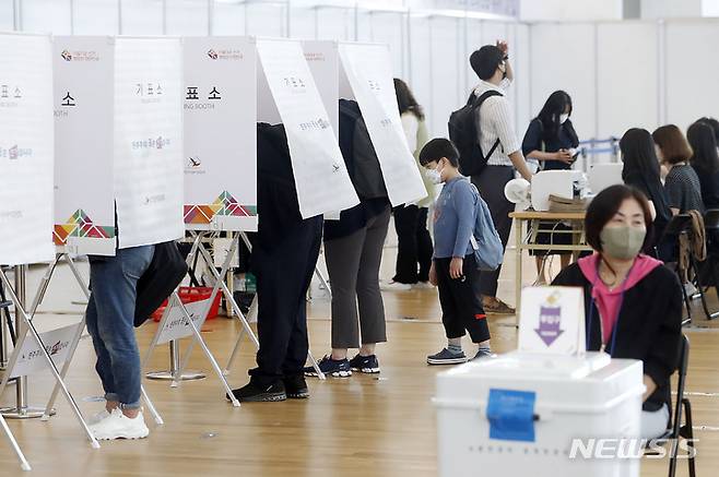 [인천공항=뉴시스] 최동준 기자 = 27일 인천국제공항에서 시민들이 해외로 출국 전 사전투표를 하고 있다. 2022.05.27. photocdj@newsis.com