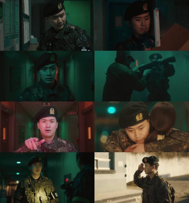 내무반의 온도를 체크해 상황판을 갱신하기도 하고, 건조하지 않게 바닥에 물을 뿌리거나 화장실을 순찰하기도 하는 현실 세계 이등병의 모습을 제대로 되살려낸 이석형. 진지하고도 무표정한 얼굴로 보여주는 미묘한 표정이 끊임없이 보는 재미를 더했다.