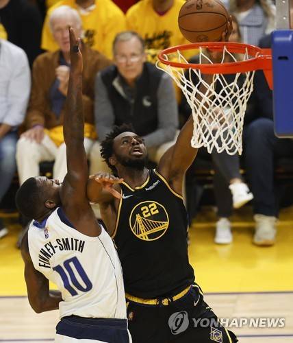 epa09978893 Golden State Warriors forward Andrew Wiggins (R) shoots, as Dallas Mavericks forward Dorian Finney-Smith (L) defends, during the first half of Game 5 of the NBA Western Conference Finals between the Golden State Warriors and the Dallas Mavericks, at Chase Center, in San Francisco, California, USA, 26 May 2022. The Golden State Warriors lead the best of seven series 3-1. EPA/JOHN G. MABANGLO SHUTTERSTOCK OUT