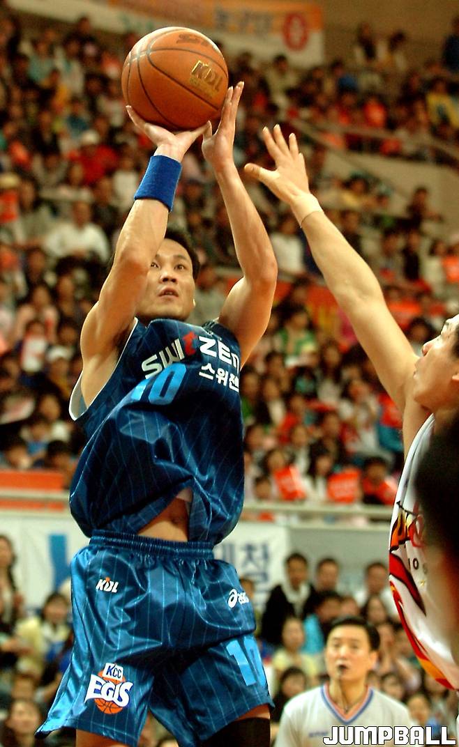 사실 기대치 혹은 순리대로 갔다면 조성원, 강병현을 잇는 KCC 간판 2번은 '구비브라이언트' 김민구(31‧190cm) 혹은 ‘스나이퍼’ 김지후(30‧187cm)가 됐을 것이다. 김지후는 고려대 재학시절 문성곤, 이승현, 이종현 등과 함께 소속팀을 대학 최강으로 이끌던 주역중 한명이다. 조금의 빈틈도 놓치지않는 킬러 본능에 두둑한 뱃심까지 더해져 언제 어떤 상황에서도 적중률높은 3점슛을 적중시킬 수 있는 저격수였다.