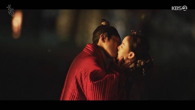 방송 말미, 이태는 조원표(허성태 분)의 압박에 서둘렀던 조연희와의 합방을 위해 그녀의 처소를 찾았다. 하지만 이태는 차마 조연희를 안지 못했고, 미안하다는 말을 남기고 곧장 방을 뛰쳐나가 유정에게 향했다. 유정에 대한 마음을 놓을 수 없었던 이태는 그녀를 발견하자 “오늘 밤 과인을 허락한다”라며 그녀에게 직진해 입을 맞췄다. 두 사람의 뜨거운 입맞춤은 그 어느 때보다도 감성적이고 로맨틱한 엔딩 장면을 탄생시켰다.