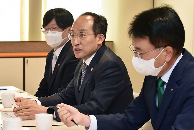 추 부총리는 오늘(27일) 서울 은행회관에서 5대 금융지주 회장단과 취임 후 첫 간담회를 열고 "과거에는 금융이 규제 대상이란 인식 속에 금융의 산업적 여건이 지나치게 위축된 측면이 있었다"며 이같이 말했습니다.