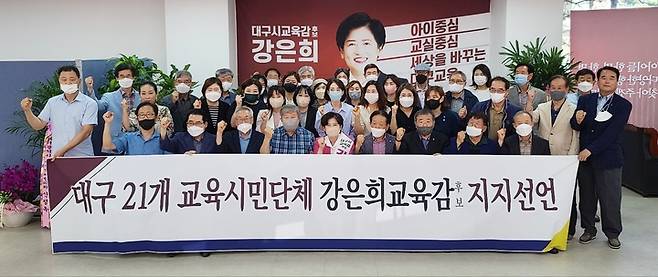 [대구=뉴시스] 박준 기자 = 대구교육시민연합, 대구시인성교육범시민실천연합 등 대구 21개 교육시민단체 대표자들이 26일 강은희 대구시교육감 후보 지지를 선언했다.