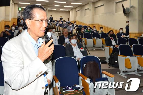 (포항=뉴스1) 최창호 기자 = 허춘웅 서울 명지성모병원장이 27일 경북 포항시 남구 에스포항병원 주관으로 열린 뇌혈관 전문병원 제1차 학술대회에서 시술 사례에 대한 질문을 하고 있다. 이번 학술대회에는 대한전문병원협회 이상덕 회장을 비롯한 관계자들과 서울 명지성모병원, 대구 굿모닝병원, 청주 효성병원 등 전국의 뇌혈관 전문병원 의료 종사자들이 참석해 학술적 네트워크를 확장하고 각종 시술 사례 등을 공유했다. 2022.5.27/뉴스1