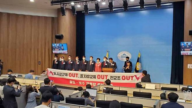 전교조는 "전교조 교육 아웃이라는 구호는 전형적인 혐오 표현으로 특정 노조와 소속 조합원 아웃을 의미하고, 노조 가입 활동을 이유로 노조와 조합원을 차별하고 배제하도록 선동하는 행위"라고 밝혔습니다.