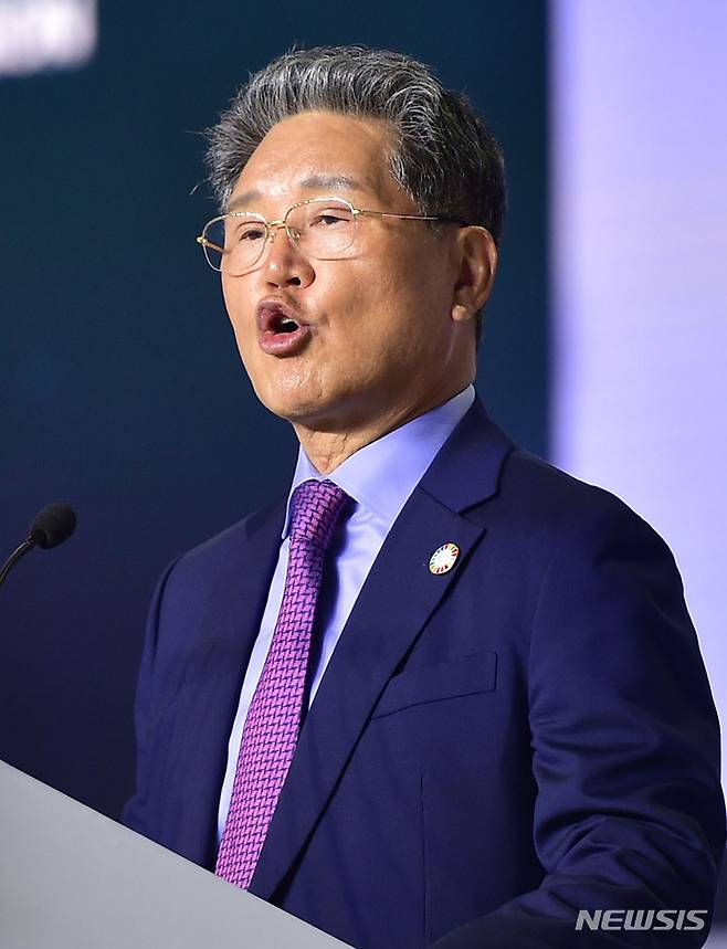 [대구=뉴시스] 이무열 기자 = 강주명 국제가스연맹(IGU) 회장이 27일 오후 대구 북구 엑스코에서 열린 ‘2022 세계가스총회’ 폐막식에서 폐회 연설을 하고 있다. 2022.05.27. lmy@newsis.com