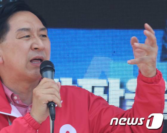(구미=뉴스1) 정우용 기자 = 27일 오후 경북 구미 선산시장에서 열린 국민의힘 김장호 구미시장 후보 선거유세에서 김기현 공동선대위원장이 지지를 호소하고 있다. 김 위원장은 "대한민국 건국의 중심이 박 대통령의 고향 구미"라며 전폭적인 지지를 호소했다. 2022.5.27/뉴스1