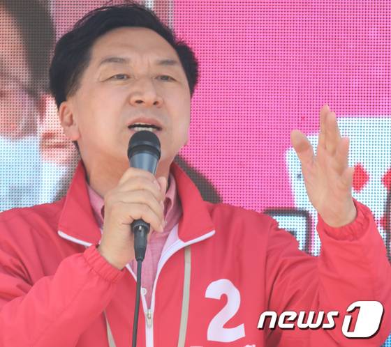 (구미=뉴스1) 정우용 기자 = 27일 오후 경북 구미 선산시장에서 열린 국민의힘 김장호 구미시장 후보 선거유세에서 김기현 공동선대위원장이 지지를 호소하고 있다. 김 위원장은 "대한민국 건국의 중심이 박 대통령의 고향 구미"라며 전폭적인 지지를 호소했다. 2022.5.27/뉴스1