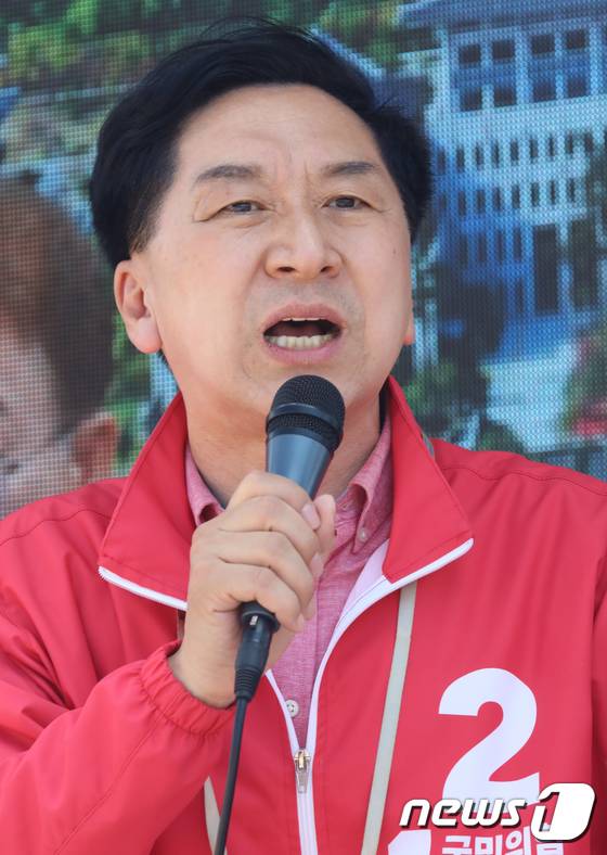 (구미=뉴스1) 정우용 기자 = 27일 오후 경북 구미 선산시장에서 열린 국민의힘 김장호 구미시장 후보 선거유세에서 김기현 공동선대위원장이 지지를 호소하고 있다. 김 위원장은 "대한민국 건국의 중심이 박 대통령의 고향 구미"라며 전폭적인 지지를 호소했다. 2022.5.27/뉴스1