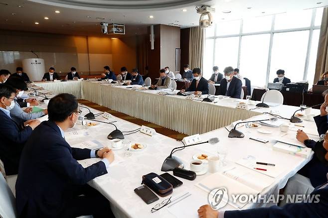 (서울=연합뉴스) 국민연금기금운용위원회가 27일 서울 중구 프레지던트호텔에서 2022년도 제3차 회의를 진행하고 중기자산배분안은 향후 5년간 목표수익률을 5.4%로 결정했다고 밝혔다. 사진은 제3차 국민연금기금운용위원회. 2022.5.27 [보건복지부 제공. 재판매 및 DB 금지]