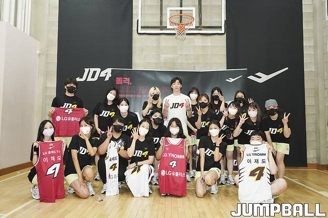 27일 서울 서교동 인아우트 코트에서 열린 프로스펙스 JD4 이재도 팬미팅. 이재도가 팬미팅에 참여한 팬과 함께 단체촬영을 끝으로 팬미팅을 마무리하고 있다.
