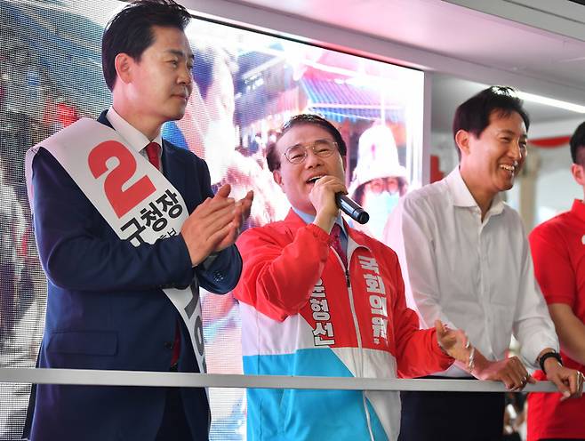 합동유세중인 윤형선-오세훈-오언석 후보