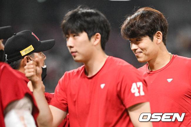 시즌 4승 달성 이태양,'김원형 감독님! 5연승 이끌었어요' [사진]