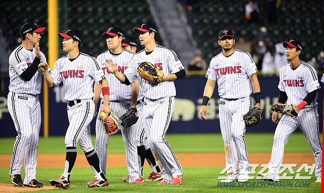 2022 KBO리그 LG트윈스와 삼성라이온즈의 경기가 27일 서울잠실야구장에서 열렸다. LG 오지환과 선수들이 팀의 5대0 승리를 확정짓고 하이파이브 하고 있다. 잠실=최문영 기자 deer@sportschosun.com/2022.05.27/
