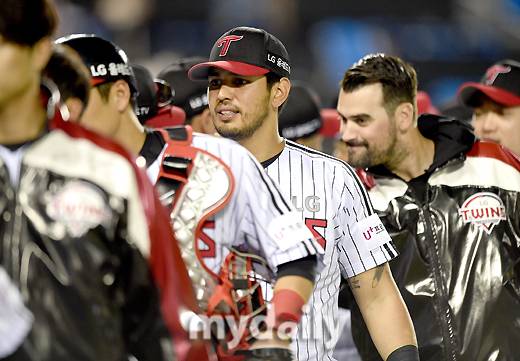 [마이데일리 = 유진형 기자] LG 루이즈가 27일 오후 서울 잠실야구장에서 진행된 '2022 신한은행 SOL KBO리그' 삼성 라이온즈와 LG 트윈스의 경기에서 5-0으로 승리한 뒤 기뻐하고 있다.