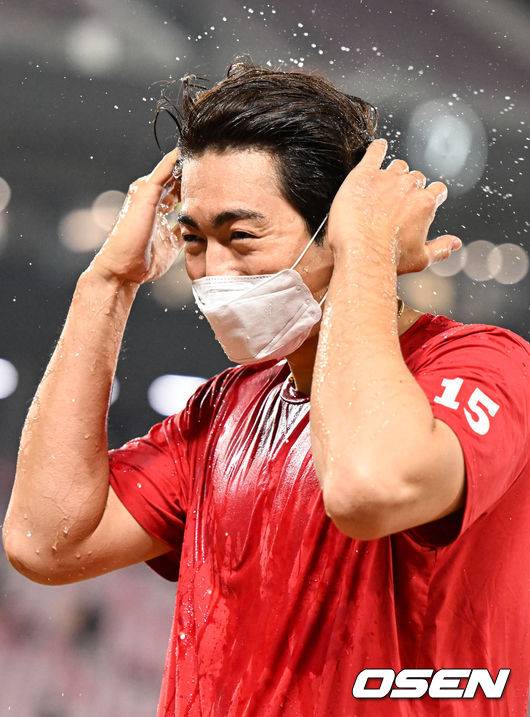 경기종료 후 시즌 4승 달성한 SSG 이태양이 동료들의 축하 물세례를 받고 있다. 2022.05.27 / soul1014@osen.co.kr