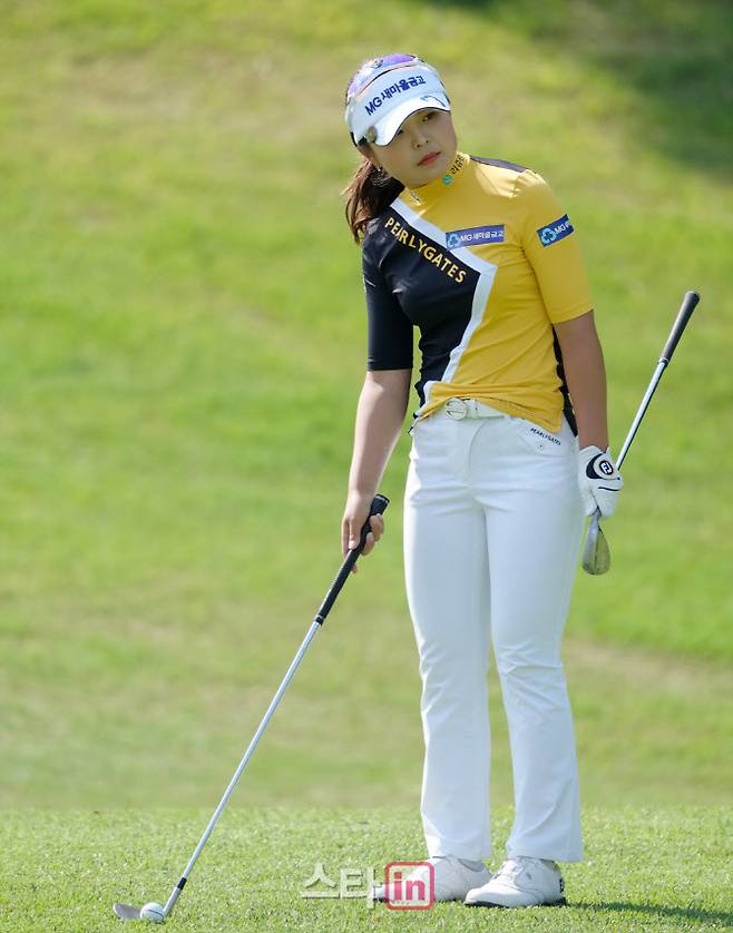 [이데일리 골프in=이천 조원범 기자]27일 경기도 이천에 위치한 사우스스프링스CC(마운틴,레이크코스 파72 6546야드)에서 'E1채리티 오픈'(총상금 8억원,우승상금 1억4천4백만원)1라운드가 열렸다.송가은의 11번홀 경기 장면.