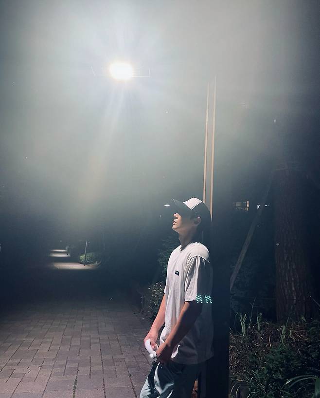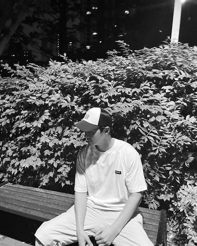 사진 속에는 한밤 중 반려견과 산책 중인 전진 류이서 부부의 모습이 담겨있다. 이어 류이서는 남편 전진의 모습을 카메라에 담았다. 흑백 배경과 벤치에 앉아 아우라를 뽐내고 있는 전진의 모습이 더해지자 화보를 연상케 했다.