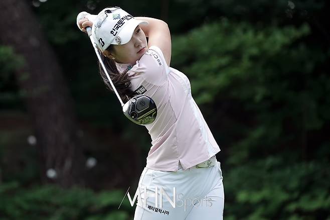 박현경(22.한국토지신탁)이 15번홀 티샷을 날리고 있다.