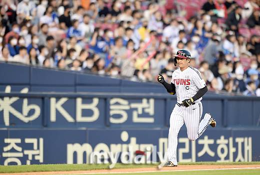 [MD포토] 오지환 '삼성 응원석 침묵시킨 하트 홈런 세리머니'