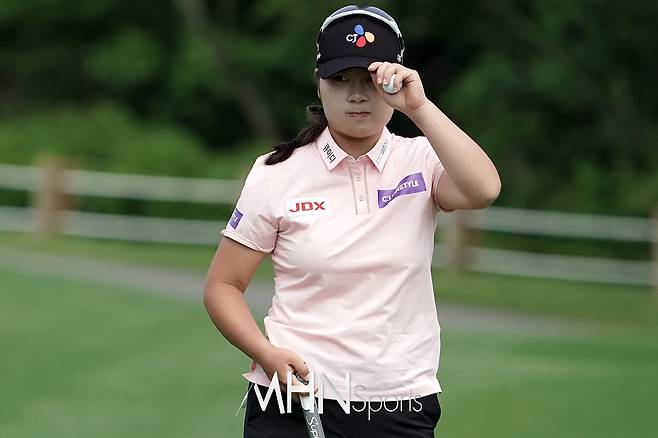 홍정민(20.CJ온스타일)이 14번홀 그린에서 파로 마무리하고 있다.