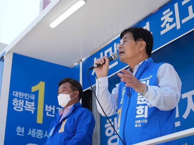 이춘희 민주당 세종시장 후보, 윤호중 민주 비대위원장과 집중 유세