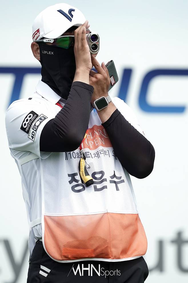 장은수 캐디 오정민 '그린 위 핀 까지의 거리는 얼마'[포토]