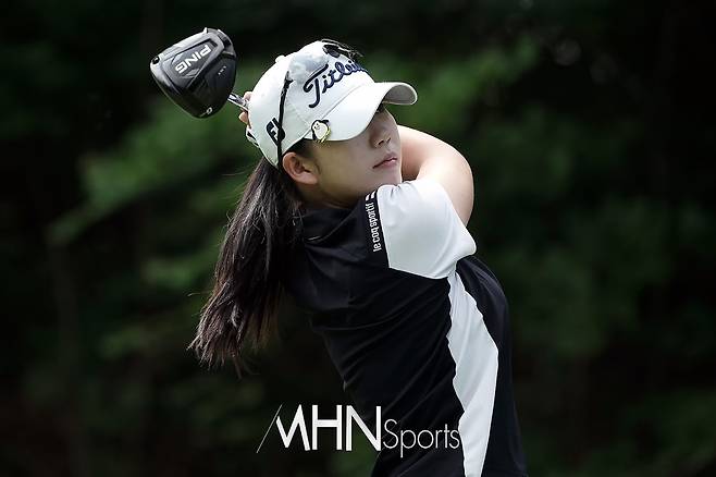 윤다현이 15번홀 티샷을 날리고 있다.