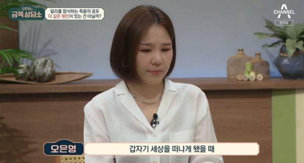 또한 알리는 낮에는 브레인포그, 밤엔 악몽에 시달린다고 털어놨다. 알리를 괴롭히는 악몽의 이유에 대해 오은영은 원초적인 죽음에 대한 공포가 지나친 편인 것 같다며 최근 가까이 있는 사람이나 의미 있는 사람의 죽음을 겪은 적이 있는지 물었다.