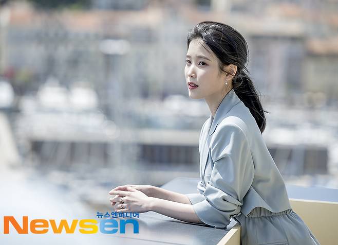 이날 이지은(아이유)가 포즈를 취하고 있다.
