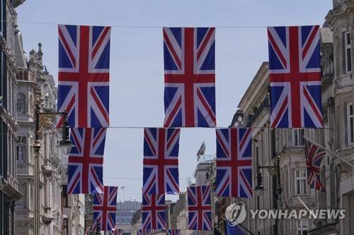 New Bond Street is decorated with Union flags, in London, Friday, May 27, 2022. Celebrations will take place June 2-5 to mark Queen Elizabeth II's Platinum Jubilee, for her 70 years on the throne.(AP Photo/Alberto Pezzali)