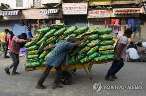 Laborers transport goods on a cart in the old part of New Delhi, Friday, May 27, 2022. Old Delhi, despite being extremely crowded and dilapidated, still serves as the symbolic heart of the city. (AP Photo/Rajesh Kumar Singh)