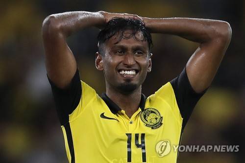 epa09979989 Mohammad Syamer Kutty Baba of Malaysia reacts after scoring a goal during the AFC Asian Cup qualifier soccer match between Malaysia and Brunei in Kuala Lumpur, Malaysia, 27 May 2022. EPA/FAZRY ISMAIL