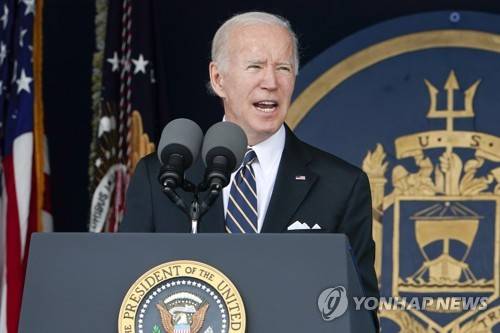 President Joe Biden speaks to the U.S. Naval Academy Class of 2022 graduation and commissioning ceremony in Annapolis, Md., Friday, May 27, 2022. (AP Photo/Manuel Balce Ceneta)