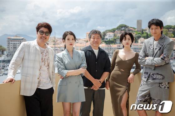(칸=뉴스1) 이준성 프리랜서기자 = 영화감독 고레에다 히로카즈와 배우 송강호, 이지은(아이유), 이주영, 강동원이 25일(현지시간) 제75회 칸 국제영화제가 열리고 있는 프랑스 남부 칸 '팔레 데 페스티벌(Palais des Festivals)' 살롱 데 앙바사되르(Salon des Ambassadeurs)에서 경쟁부문 진출작 '브로커' 인터뷰 촬영을 하고 있다. 2022.5.27/뉴스1
