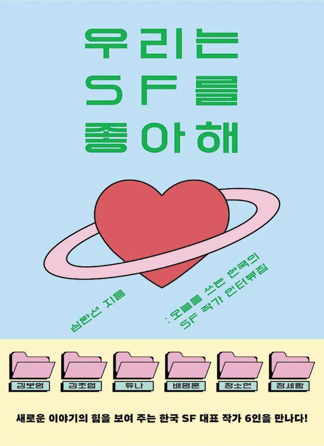 SF 평론가 심완선이 김보영, 김초엽, 듀나, 배명훈, 정소연, 정세랑 등 현재 국내에서 가장 활발하게 활동하는 SF 작가 여섯 명을 인터뷰한 책이다. 김초엽은 “SF가 진입장벽이 높지만 나의 취향을 조금 내려놓으면 새로운 세계를 만나게 된다”고 말하고 정세랑은 “인류의 양면성을 계속 생각하게 된다. 끝내는 관찰하고 사랑하는 쪽이 더 강해졌으면 좋겠다”고 말한다. 심완선 지음, 민음사, 1만7000원.