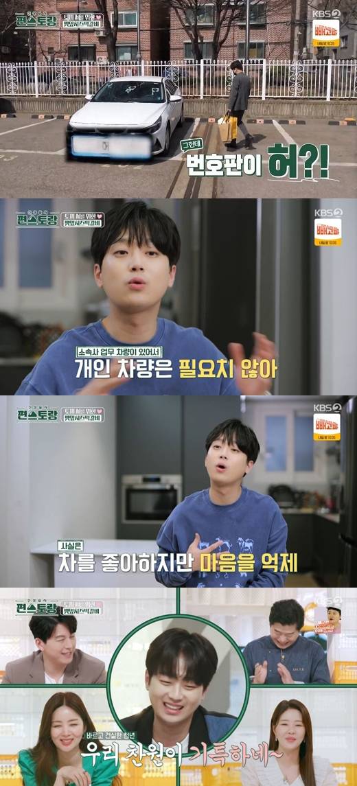 이날 직접 렌터카를 운전해 의문의 집으로 향한 이찬원은 자동차를 사지 않는 까닭을 묻자 "이동 차량이 따로 있다보니 매일 차가 필요하지 않다. 차를 탈 일이 많지 않다"라며 "사실 차를 좋아하는데 마음을 억제하는 거다"라고 털어놨다.