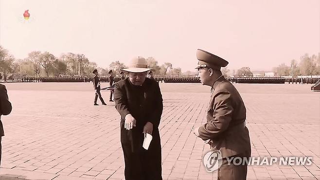 (서울=연합뉴스) 조선중앙TV가 지난 27일 4월 25일 열병식 준비과정이 담긴 새로운 기록영화 '조선의 존엄과 위용을 과시한 주체의 열병식'을 공개했다. 영화에는 열병식 초기 구상 단계부터 훈련과정까지 열병식 개최 전 과정에 세세히 관여하고 점검하는 김정은 국무위원장의 모습이 소상하게 담겼다. [조선중앙TV화면] 2022.5.28