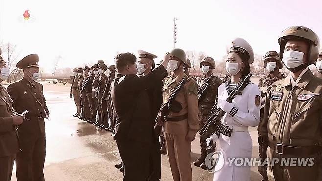 (서울=연합뉴스) 조선중앙TV가 지난 27일 4월 25일 열병식 준비과정이 담긴 새로운 기록영화 '조선의 존엄과 위용을 과시한 주체의 열병식'을 공개했다. 영화에는 열병식 초기 구상 단계부터 훈련과정까지 열병식 개최 전 과정에 세세히 관여하고 점검하는 김정은 국무위원장의 모습이 소상하게 담겼다. [조선중앙TV화면] 2022.5.28