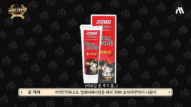 여기서 멈추지 않고 다양한 식품도 만들어졌습니다. 떡볶이, 납작당면, 오징어, 아몬드 등 온갖 식품에 불닭볶음면 소스가 곁들여져 판매되고 있고요. 심지어 물티슈, 마스크, 립밤, 치약도 찾아볼 수 있습니다.
