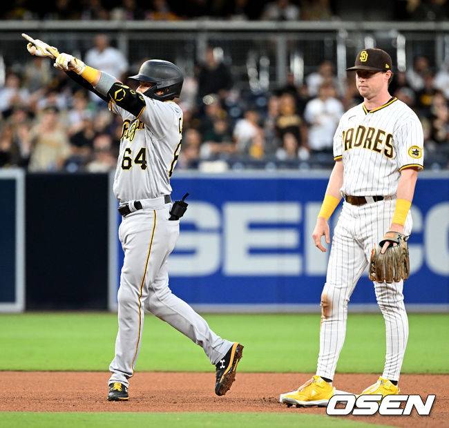 4회초 1사 1, 2루 상황 피츠버그 디에고 카스티요가 달아나는 2타점 2루타를 날리고 2루에 안착해 기뻐하고 있다. 2022.05.28 /dreamer@osen.co.kr